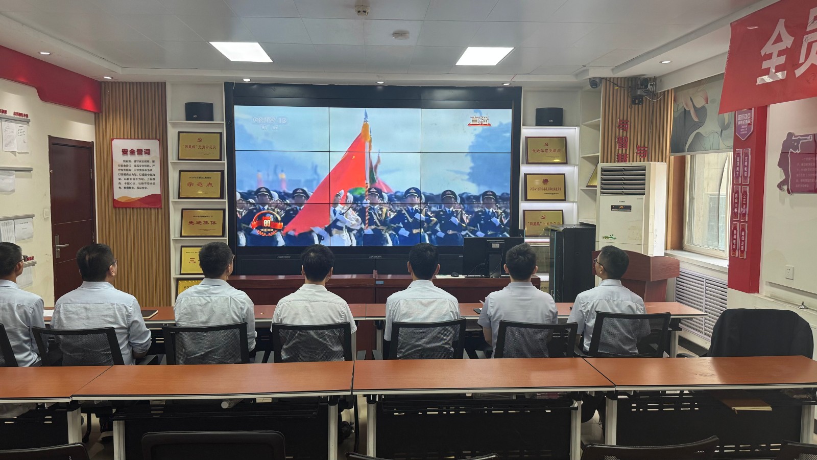 歷史燭照未來,精神永續(xù)傳承。為深切緬懷在抗日戰(zhàn)爭中英勇獻身的革命先烈,大力弘揚偉大的抗戰(zhàn)精神,引導全體黨員、職工銘記光輝歷史、堅定理想信念、強化責任擔當,9月3日,機運工區(qū)黨支部組織開展了“銘記歷史偉業(yè),傳承紅色基因”主題黨日活動,組織全體黨員集中觀看紀念中國人民抗日戰(zhàn)爭暨世界反法西斯戰(zhàn)爭勝利80周年閱兵儀式現(xiàn)場直播。上午九時整,機運工區(qū)全體黨懷著無比崇敬與激動的心情,目光齊聚屏幕。伴隨著激昂雄壯的國歌奏響,鮮艷的五星紅旗在天安門廣場冉冉升起,大家心潮澎湃,肅然起敬。隨后,規(guī)模宏大、氣勢磅礴的閱兵式正式開始。屏幕上,一個個整齊劃一、威武雄壯的徒步方隊,邁著鏗鏘有力、撼人心魄的步伐走過檢閱臺,堅毅的眼神、挺拔的身姿,充分展現(xiàn)了新時代軍人聽黨指揮的忠誠品格和能打勝仗的過硬本領;一列列代表著國家科技實力與國防現(xiàn)代化建設最新成果的裝備方隊,鐵流滾滾,氣勢如虹,尖端武器依次亮相,彰顯了捍衛(wèi)國家主權、安全、發(fā)展利益的堅定決心與強大能力;雄鷹呼嘯,劃破長空,戰(zhàn)機編隊以精準的隊形和磅礴的氣勢接受檢閱,描繪出壯美的藍天畫卷,宣示著捍衛(wèi)國家領空安全的鋼鐵意志。整個閱兵過程,秩序井然、威武雄壯、氣勢恢宏,生動詮釋了人民軍隊“聽黨指揮、能打勝仗、作風優(yōu)良”的強軍目標,全方位展示了在黨的堅強領導下,國家日益強大的綜合國力和維護世界和平的堅定信念。屏幕前,黨員們全神貫注,無不被這震撼人心的場面所感染,民族自豪感與榮譽感油然而生,現(xiàn)場不時響起由衷的贊嘆和熱烈的掌聲。通過本次“銘記歷史偉業(yè),傳承紅色基因”主題黨日活動,機運工區(qū)黨支部全體黨員經(jīng)歷了一次深刻的精神淬煉與思想升華。大家的歷史使命感、民族自豪感、崗位責任感得到顯著增強,紛紛表示以更加飽滿昂揚的精神狀態(tài)、更加求真務實的工作作風、更加開拓創(chuàng)新的進取意識,恪盡職守,銳意進取,全力以赴保障原煤運輸安全高效,為工區(qū)及公司的持續(xù)高質量發(fā)展貢獻全部力量!
